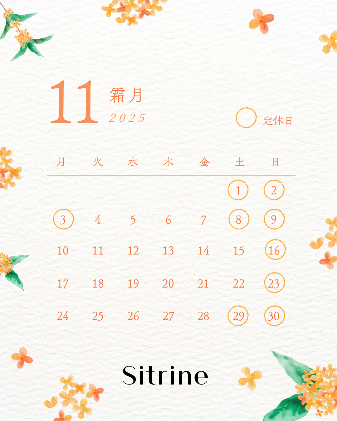 11月営業日